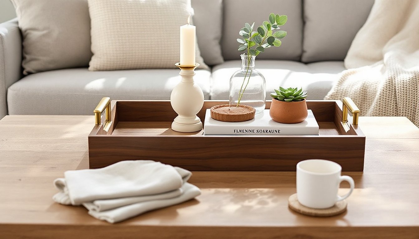 A well-styled coffee table tray isn’t just decorative, it’s functional furniture organizing at its best. Whether corralling remotes and coasters