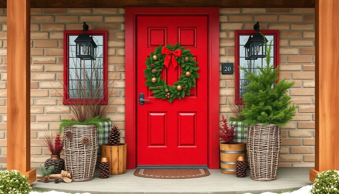 Utilizing materials such as wood burlap and pinecones enhances the charm while vintage accents add a nostalgic touch. This festive decor not only beautifies the entryway but also invites family and friends to gather and celebrate.